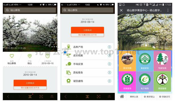 碭山“數(shù)字果園”的托普云農(nóng)綜合管理平臺(tái)還嵌入了農(nóng)產(chǎn)品質(zhì)量安全追溯系統(tǒng),實(shí)現(xiàn)“從農(nóng)田到餐桌”的全程可追溯化管理。該系統(tǒng)是區(qū)域農(nóng)產(chǎn)品質(zhì)量安全信息統(tǒng)一發(fā)布和查詢平臺(tái),根據(jù)農(nóng)產(chǎn)品“一物一碼”標(biāo)準(zhǔn),消費(fèi)者可以掃描農(nóng)產(chǎn)品上附帶的而為買,準(zhǔn)確了解農(nóng)產(chǎn)品從生產(chǎn)、加工、物流、倉(cāng)儲(chǔ)、銷售等全過程信息。