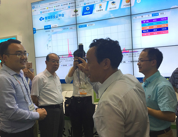 考察期間,屈冬玉副部長、唐珂司長、王小兵副司長一行來到浙江托普云農(nóng)科技股份有限公司(以下簡稱“托普云農(nóng)”)展位。公司常務(wù)副總朱旭華向其介紹匯報了公司一年來在物聯(lián)網(wǎng)方面的新成果和新進展,探討了智慧農(nóng)業(yè)整體解決方案在政府職能端和產(chǎn)業(yè)應(yīng)用端的框架和功能。