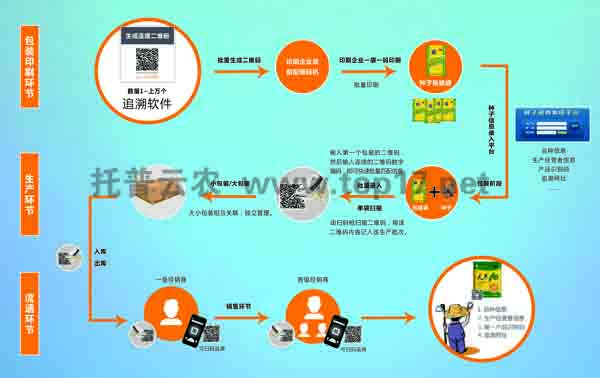 為了配合種子標簽,很多企業(yè)也做出力所能及的工作。比如,浙江托普云農(nóng)科技股份有限公司根據(jù)9月18日農(nóng)業(yè)部辦公廳印發(fā)的《農(nóng)作物種子標簽二維碼編碼規(guī)則》要求,推出的農(nóng)作物種子二維碼標簽追溯系統(tǒng)。系統(tǒng)分為:包裝印刷環(huán)節(jié)、生產(chǎn)環(huán)節(jié)、流通環(huán)節(jié)、追溯環(huán)節(jié)等四個環(huán)節(jié)。操作靈活方便,可自動生產(chǎn)唯一性二維碼,品種和批次獨立管理,又相互關聯(lián)。消費者,執(zhí)法者,經(jīng)營者可通過手機二維碼獲得種子的品種信息、生產(chǎn)經(jīng)營者信息、品識別碼、追溯網(wǎng)址等內(nèi)容。
