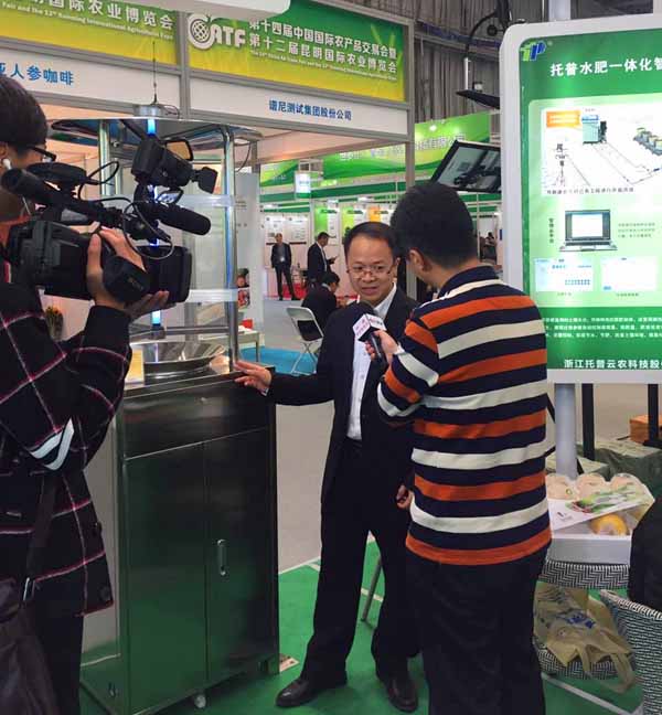 第十四屆中國國際農(nóng)產(chǎn)品交易會正在昆明舉行,央視七套《聚焦三農(nóng)》派出多路記者在現(xiàn)場采訪和體驗。在科技展區(qū)浙江托普云農(nóng)科技股份有限公司(以下簡稱“托普云農(nóng)”)的“無線農(nóng)業(yè)氣象監(jiān)測站”吸引了記者的目光。