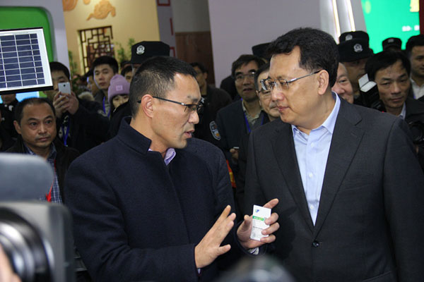 本屆展會(huì)“互聯(lián)網(wǎng)+”成托普云農(nóng)展區(qū)亮點(diǎn),吸引了省領(lǐng)導(dǎo)的目光及浙江衛(wèi)視的關(guān)注。省委副書記袁家軍、省人大常委會(huì)副主任程渭山、副省長孫景淼等領(lǐng)導(dǎo)在工作人員的陪同下參觀了托普云農(nóng)展區(qū)。托普云農(nóng)董事長陳渝陽向袁家軍副書記一行介紹了公司在物聯(lián)網(wǎng)方面取得的階段性進(jìn)展和研發(fā)成果,結(jié)合現(xiàn)場展示的植保信息化系統(tǒng),向袁家軍副書記一行演示了智能農(nóng)業(yè)儀器是如何“+”互聯(lián)網(wǎng)技術(shù)在全天候無人值守的情況下實(shí)現(xiàn)“四情”監(jiān)測的。直接展現(xiàn)了互聯(lián)網(wǎng)產(chǎn)業(yè)與農(nóng)業(yè)產(chǎn)業(yè)融合發(fā)展促進(jìn)傳統(tǒng)農(nóng)業(yè)轉(zhuǎn)型升級(jí)的發(fā)展現(xiàn)狀。