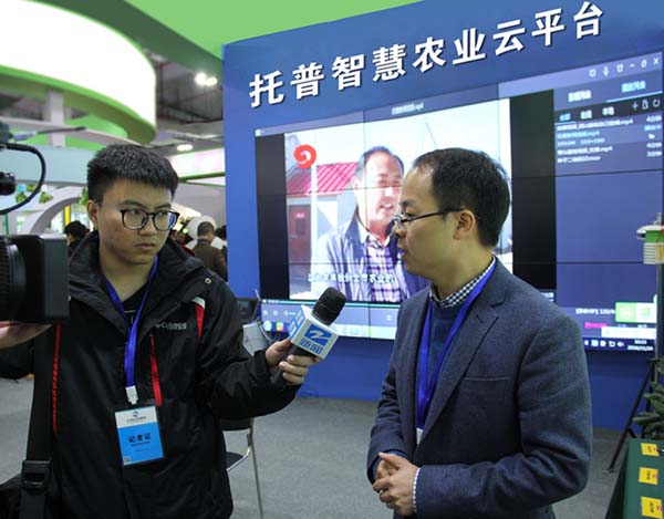 這一番“互聯(lián)網(wǎng)+農(nóng)業(yè)”的介紹也獲得了浙江衛(wèi)視的關(guān)注。記者來到托普云農(nóng)展位,公司副總朱旭華向記者介紹了公司獲得的科研成就及展出的智能化軟硬件系統(tǒng)。主要有:托普云農(nóng)農(nóng)業(yè)“四情”監(jiān)控系統(tǒng)、設(shè)施農(nóng)業(yè)監(jiān)控系統(tǒng)、水肥一體化監(jiān)控系統(tǒng)、智慧農(nóng)業(yè)云平臺(tái)等農(nóng)業(yè)物聯(lián)網(wǎng)系統(tǒng)、平臺(tái)及土壤墑情監(jiān)控系統(tǒng)硬件、農(nóng)藥殘留速測儀、相關(guān)智能硬件設(shè)備(如遠(yuǎn)程傳輸智能蟲情測報(bào)燈、溫室通、大田六合一無線傳感器、植物本體傳感器)。