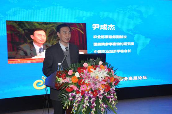 農(nóng)業(yè)部原常務(wù)副部長、國務(wù)院參事室特約研究員、中國農(nóng)業(yè)經(jīng)濟(jì)學(xué)會(huì)會(huì)長尹成杰作大會(huì)主旨報(bào)告