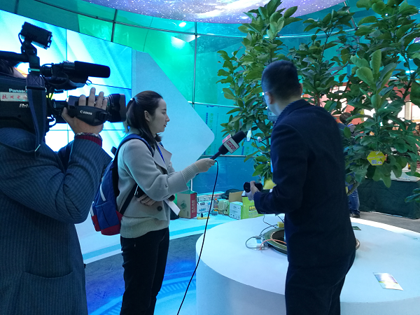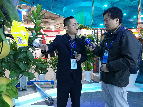 “在這棵文旦樹上,我們安裝了無線葉面溫度傳感器、光照強(qiáng)度傳感器、果實(shí)膨大傳感器。通過這些傳感器采集傳輸?shù)臄?shù)據(jù),我們就能知道整個樹的生長秘密”。展會現(xiàn)場,現(xiàn)代農(nóng)業(yè)與信息化的互融發(fā)展,吸引浙江衛(wèi)視、杭州電視臺、蕭山日報、舟山電視臺、金華電視臺等記者前來采訪。