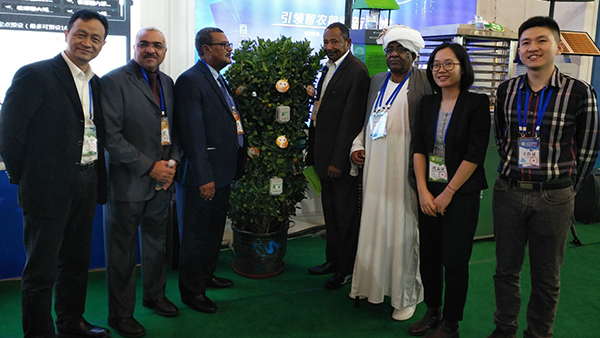農(nóng)業(yè)信息化是農(nóng)業(yè)現(xiàn)代化的標(biāo)志,為此海南集中優(yōu)勢(shì)積極開展海南特色農(nóng)產(chǎn)品的電商促銷、農(nóng)產(chǎn)品質(zhì)量安全追溯以及農(nóng)業(yè)的信息化服務(wù)。在海南,瓜果種類資源豐富多樣。為提升現(xiàn)場(chǎng)參展人員的農(nóng)產(chǎn)品質(zhì)量安全溯源體驗(yàn),托普云農(nóng)還將橘樹搬進(jìn)展區(qū)。分布在展區(qū)的兩棵橘子樹,更是獲得國(guó)外友人的好奇與關(guān)注。通過手機(jī)掃描二維碼,便能查看到橘子的光照溫度、土壤溫濕度等生長(zhǎng)環(huán)境信息。如此智能化的操作,讓國(guó)際友人贊嘆不已。
