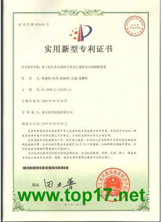 恭喜浙江托普又獲近紅外光譜手持式土壤養(yǎng)分無(wú)損測(cè)量裝置實(shí)用新型專利!