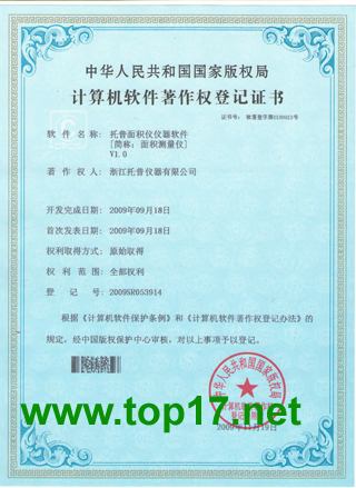 圖 浙江托普面積測量儀獲軟件著作權(quán)