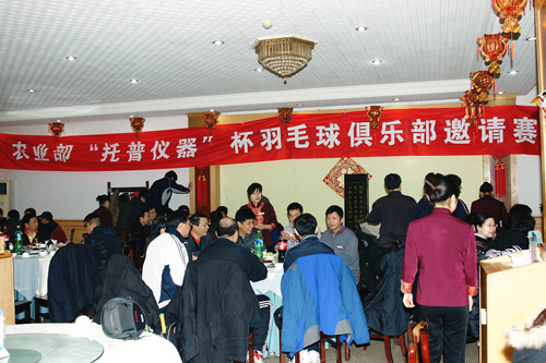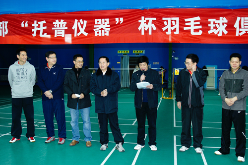 由全國農(nóng)技推廣中心羽毛球俱樂部主辦、浙江托普儀器有限公司全程贊助承辦的農(nóng)業(yè)部"托普儀器"杯羽毛球俱樂部邀請賽,于2011年1月3日上午在 北京陽光羽毛球館隆重舉行。當(dāng)天上午9點(diǎn),邀請賽舉行了熱烈簡短的開幕儀式,開幕式由農(nóng)技推廣中心夏敬源主任主持,托普儀器公司總經(jīng)理陳渝陽先生和參賽俱樂部代表農(nóng)業(yè)部農(nóng)墾局李偉國局長分別做了熱情洋溢的致辭,農(nóng)業(yè)部黨組副書記、常務(wù)副部長、農(nóng)業(yè)部機(jī)關(guān)羽毛球俱樂部名譽(yù)會長危朝安出席開幕式并為本次比賽開球,當(dāng)危部長擊球,球在空中劃出一道漂亮的弧線,本次比賽正式開始。