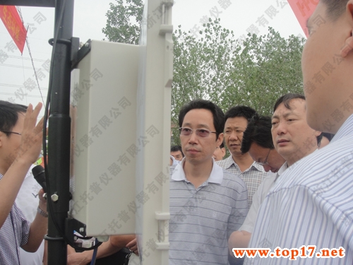 會議結(jié)束后,參會人員一同參觀了荊州區(qū)川店鎮(zhèn)千畝高產(chǎn)示范片。托普參會人員現(xiàn)場安裝了固定式無線農(nóng)業(yè)氣象綜合監(jiān)測站并進行實際操作。湖北省農(nóng)業(yè)廳徐能海副廳長與各工作者駐足觀看、仔細聽取儀器講解,并詳細詢問產(chǎn)品細節(jié),對此款儀器表現(xiàn)出了濃厚的興趣。