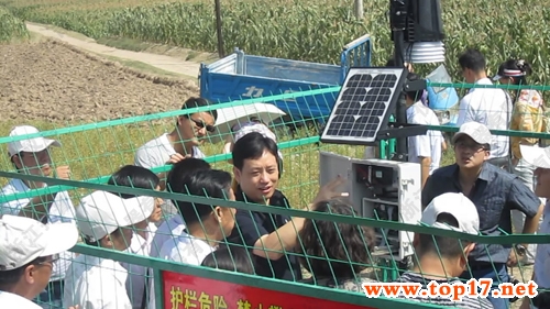 在示范區(qū)內(nèi),護(hù)欄內(nèi)的固定式無(wú)線農(nóng)業(yè)氣象綜合監(jiān)測(cè)站吸引了高處長(zhǎng)及各參會(huì)代表的注意。陳渝陽(yáng)總經(jīng)理詳細(xì)介紹了此系統(tǒng)的功能、用途,并現(xiàn)場(chǎng)簡(jiǎn)單進(jìn)行操作講解。各參會(huì)工作者不時(shí)詢問(wèn)儀器性能、監(jiān)測(cè)時(shí)間設(shè)定、數(shù)據(jù)發(fā)送、數(shù)據(jù)查看、供電時(shí)間等細(xì)節(jié)問(wèn)題,陳總經(jīng)理一一做出詳細(xì)解答。高處長(zhǎng)在陳總經(jīng)理的指導(dǎo)下親自進(jìn)行了操作。