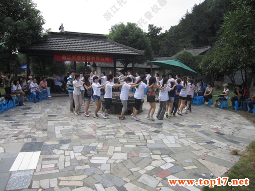 早上8:30分由三個(gè)團(tuán)隊(duì)帶領(lǐng)著公司全體員工浩浩蕩蕩的向目的地----杭州大清谷進(jìn)軍,約在早上9點(diǎn)整全體員工安全到達(dá)目的地。9.10整活動(dòng)正式拉開(kāi)序幕,第一項(xiàng)是領(lǐng)導(dǎo)講話,接下來(lái)是全體員工集體亮相,為了加強(qiáng)員工之前的相互了解和感情交流,主持人可是費(fèi)了不少心思,(把全體人員按結(jié)婚與否分為兩組席地而坐)。