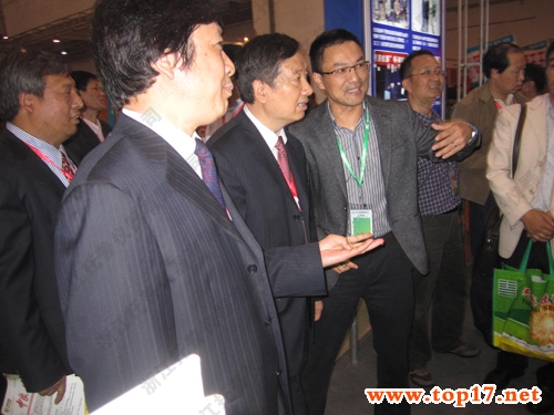 圖為:托普總經(jīng)理陳渝陽先生陪同張延秋局長等一行領(lǐng)導(dǎo)參觀托普展位