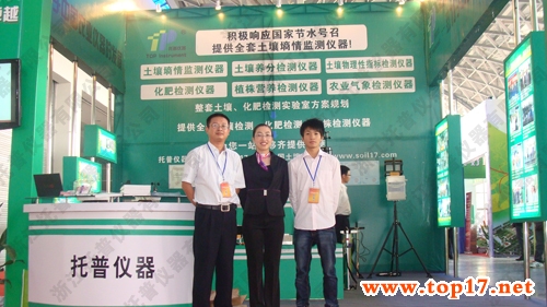 浙江托普儀器有限公司作為特展展商的身份參加了此次展會,有效的利用了展位上的燈箱、展板、版頭等廣告位,來體現(xiàn)出公司的特色及質(zhì)量第一、誠信至上、服務(wù)為本的經(jīng)營理念。在設(shè)計(jì)上以綠色為主,向參展商們展現(xiàn)出一種清新、自然、環(huán)保的主題,同時(shí)浙江托普儀器利用了產(chǎn)品樣品及資料在現(xiàn)場介紹相關(guān)的技術(shù)知識,并派技術(shù)人員、業(yè)務(wù)員現(xiàn)場為參展客戶解難答疑,由此吸引了眾多前來觀光以及洽談業(yè)務(wù)的業(yè)內(nèi)人士,眾多農(nóng)業(yè)部領(lǐng)導(dǎo)也前來參觀并加以指導(dǎo),如原農(nóng)業(yè)部部長陳耀邦、農(nóng)技推廣中心夏敬源主任等。