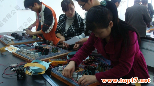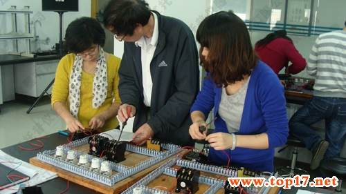 圖為:電工培訓(xùn)現(xiàn)場學(xué)員在老師的指導(dǎo)下親自動(dòng)手做實(shí)驗(yàn)