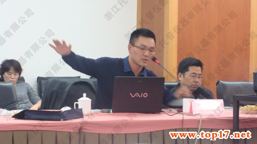 圖為:浙江托普公司朱旭華經(jīng)理向參會(huì)者演示產(chǎn)品
