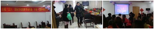 三月八日上午,活動(dòng)組織者開(kāi)始積極布置活動(dòng)現(xiàn)場(chǎng),整個(gè)活動(dòng)現(xiàn)場(chǎng)主要以粉紫色為主色調(diào),營(yíng)造出一種溫馨的氛圍。大家在工會(huì)主席的安排下各司其職:擺桌椅,掛氣球,洗水果,擺水果,忙的不亦樂(lè)乎。