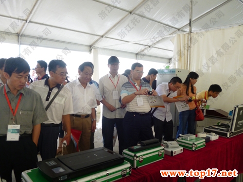 會(huì)議第二天,代表們參觀了小湯山國(guó)家精準(zhǔn)農(nóng)業(yè)研究示范基地和國(guó)家現(xiàn)代農(nóng)業(yè)科技城農(nóng)業(yè)物聯(lián)網(wǎng)綜合服務(wù)平臺(tái)。全國(guó)農(nóng)技中心栗鐵申副主任、全國(guó)農(nóng)技中心標(biāo)準(zhǔn)信息處湯金儀處長(zhǎng)在托普儀器公司陳渝陽總經(jīng)理的帶領(lǐng)下參觀了托普展臺(tái)展示出的無線多點(diǎn)土壤墑情監(jiān)測(cè)系統(tǒng)、農(nóng)藥殘留速測(cè)儀、葉綠素測(cè)定儀、葉面積測(cè)定儀、土壤養(yǎng)分速測(cè)儀等一系列自產(chǎn)農(nóng)業(yè)儀器,并對(duì)托普自產(chǎn)的農(nóng)藥殘留速測(cè)儀大加贊賞。