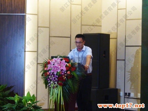 圖為:托普儀器陳渝陽總經(jīng)理作為企業(yè)代表在會(huì)上做詳細(xì)報(bào)告