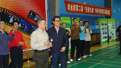 農業(yè)部黨組副書記、常務副部長、農業(yè)部機關羽毛球俱樂部名譽會長危朝安農業(yè)部農墾局李偉國局長、全國農技推廣中心夏敬源主任、托普儀器公司總經理陳渝陽先生出席開幕式