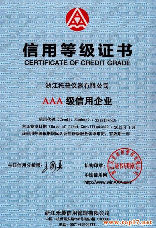 熱烈祝賀浙江托普儀器有限公司在2013年1月獲得AAA級信用企業(yè)稱號。