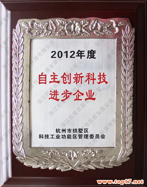 根據(jù)杭州市拱墅區(qū)科技工業(yè)功能區(qū)管委會研究決定,為了進(jìn)一步引導(dǎo)企業(yè)自主創(chuàng)新,走新型工業(yè)化道路,加快發(fā)展高薪技術(shù)產(chǎn)業(yè),不斷優(yōu)化產(chǎn)品結(jié)構(gòu),特授予托普儀器“自主創(chuàng)新科技進(jìn)步企業(yè)”榮譽稱號。