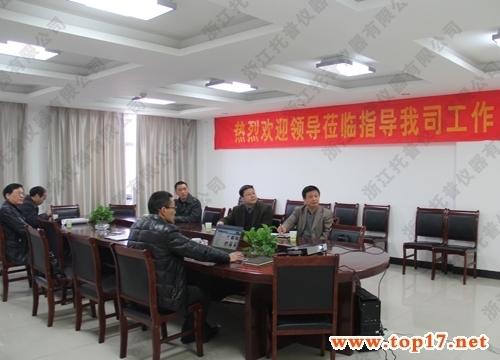 2013年3月4日上午,杭州市經(jīng)濟(jì)與信息化委員會(huì)郝志毅副主任、魏兆宏副處長(zhǎng)、賴(lài)國(guó)軍副調(diào)研員、區(qū)發(fā)改局陳副仁副局長(zhǎng)來(lái)到浙江托普儀器有限公司進(jìn)行視察指導(dǎo)工作。托普儀器總經(jīng)理陳渝陽(yáng)對(duì)各位領(lǐng)導(dǎo)的到來(lái)表示熱烈的歡迎。