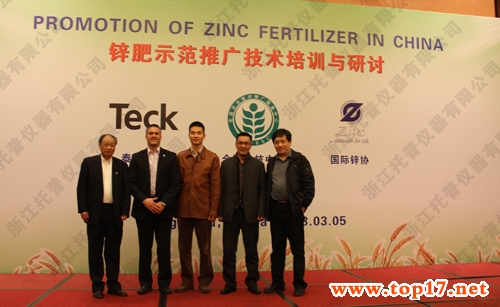 圖為:全國農(nóng)技推廣中心杭大鵬書記(中間)、全國農(nóng)技推廣中心節(jié)水處高祥照處長(右一)、加拿大泰克資源安德魯·格林教授(左二)、國際鋅協(xié)會樊明憲教授(左一)、浙江托普儀器有限公司陳渝陽董事長(右二)合影留念