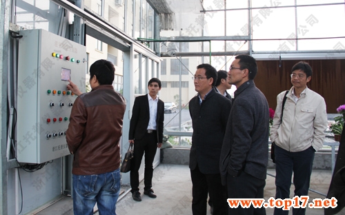 圖為:托普儀器技術人員為吳處長等領導演示物聯(lián)網(wǎng)系統(tǒng)的室內(nèi)操作