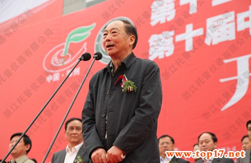 圖為:國務(wù)院參事、農(nóng)業(yè)部原副部長劉堅宣布大會開幕