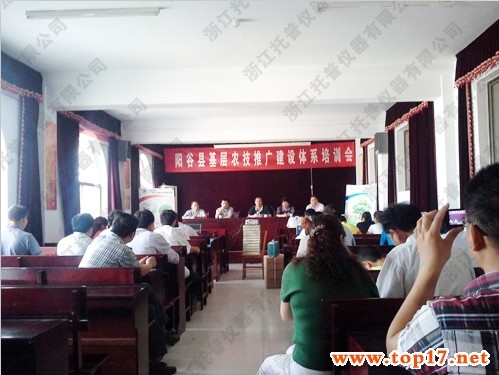 2013年9月14日,山東省聊城市陽(yáng)谷縣召開(kāi)“陽(yáng)谷縣基層農(nóng)技推廣體改項(xiàng)目?jī)x器設(shè)備發(fā)放培訓(xùn)會(huì)”,縣農(nóng)業(yè)局楊艾勤書記、農(nóng)技推廣中心王振東副主任、15個(gè)鄉(xiāng)鎮(zhèn)農(nóng)技站站長(zhǎng)以及技術(shù)員參加會(huì)議。托普儀器技術(shù)人員出席本次會(huì)議,為參加會(huì)議的眾人培訓(xùn)本公司基層農(nóng)業(yè)儀器設(shè)備的操作原理、使用步驟以及保養(yǎng)方法。