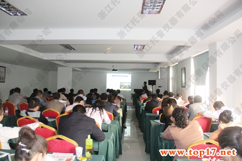 圖為:托普儀器陳渝陽總經(jīng)理向嘉賓講解產(chǎn)品