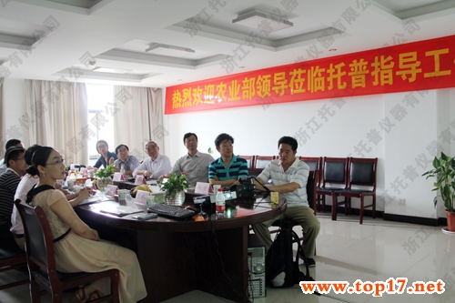 2014年7月5日,農(nóng)業(yè)部原部長(zhǎng)、中國(guó)農(nóng)技推廣協(xié)會(huì)名譽(yù)會(huì)長(zhǎng)陳耀邦一行在浙江省農(nóng)業(yè)廳相關(guān)領(lǐng)導(dǎo)的陪同下,蒞臨托普儀器開(kāi)展調(diào)研活動(dòng)。在詳細(xì)了解托普儀器發(fā)展現(xiàn)狀、未來(lái)規(guī)劃之后,調(diào)研組與托普儀器管理高層召開(kāi)了座談會(huì)。