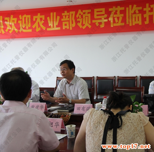 7月5日,農(nóng)業(yè)部原部長(zhǎng)、中國(guó)農(nóng)技推廣協(xié)會(huì)名譽(yù)會(huì)長(zhǎng)陳耀邦、全國(guó)農(nóng)技推廣中心副主任、中國(guó)農(nóng)技推廣協(xié)會(huì)秘書長(zhǎng)謝建華一行,蒞臨浙江托普儀器有限公司進(jìn)行調(diào)研。
