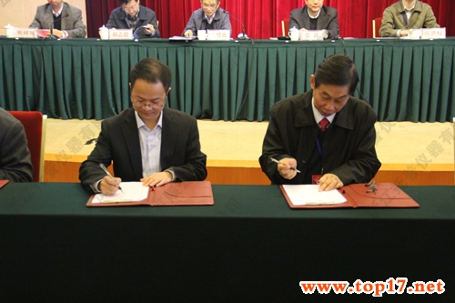 圖為:浙江托普儀器有限公司朱旭華副總經(jīng)理與孫九林院士簽約