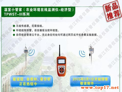 您現(xiàn)在的位置:中國農(nóng)業(yè)儀器網(wǎng) > 托普風(fēng)采 >新產(chǎn)品上市通知——經(jīng)濟(jì)型農(nóng)業(yè)環(huán)境在線監(jiān)測(cè)儀