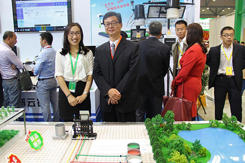 雙交會期間,全國農(nóng)業(yè)技術(shù)推廣服務(wù)中心陳生斗主任、謝建華副主任一行蒞臨托普云農(nóng)展區(qū),觀摩了公司展出的水肥一體化智能監(jiān)控系統(tǒng)和土壤墑情監(jiān)控預(yù)警平臺與設(shè)備,并且與托普云農(nóng)營銷總監(jiān)陳麗婷親切交流。
