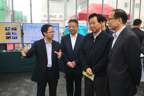 圖為:王輝忠副書記(右二)、黃旭明副省長(右三)、史濟(jì)錫廳長(右一)蒞臨托普展區(qū)