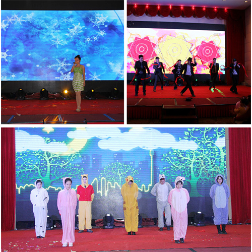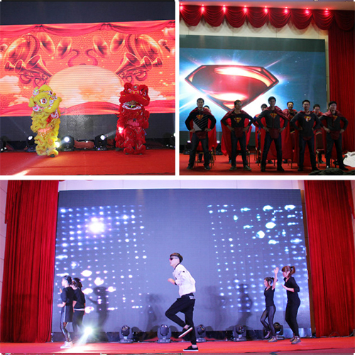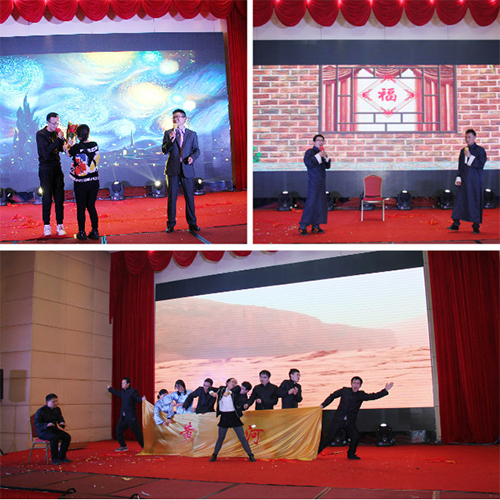 精彩紛呈的“新故事,新起點”2016新春年度盛典在四位支持人的深情開場中拉開序幕。熱情歡樂《金獅送!奉I先開演,為大家送來了新年的祝福;勁舞《說愛就愛》,激情火爆,樂觀向上的精神風貌展現得淋漓盡致;研發(fā)團隊的舞臺劇《電影院那些事》演繹了公司研發(fā)人員豐富飽滿的內心世界。一首《飄雪》,瞬間將我們就帶入了純情浪漫模式。古箏演奏,優(yōu)雅悠揚;激情昂揚的《保衛(wèi)黃河》將整個晚宴推向高潮;銷售部老男人們的《群魔亂舞》讓大家更是樂的開懷暢飲!期間的互動環(huán)節(jié)及歡樂大抽獎讓全場氛圍熱烈而又充滿期待,高潮迭起!