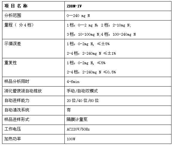 自動(dòng)進(jìn)樣凱氏定氮儀技術(shù)參數(shù):