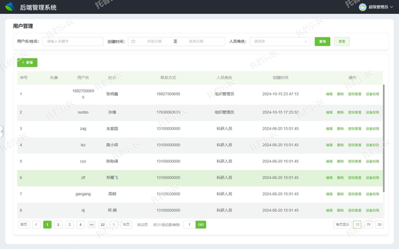 (2)人工氣候室數(shù)據(jù)列表:支持展示所有人工氣候室終端列表及基礎(chǔ)信息;支持展示人工氣候室設(shè)備狀態(tài):在線、離線;支持人工氣候室序列號查詢;支持新增/刪除終端數(shù)據(jù);支持編輯終端名稱;